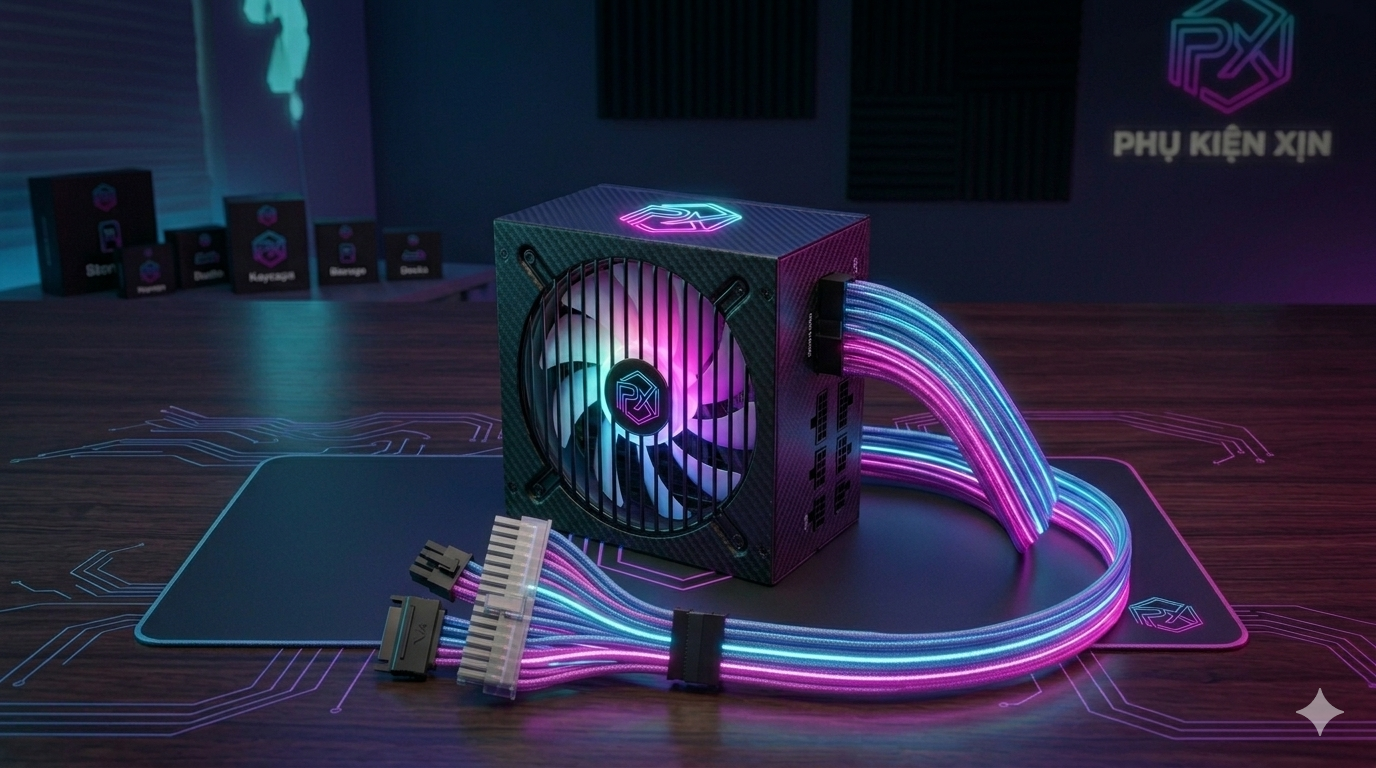 Bộ nguồn được ví như “trái tim” của cả hệ thống máy tính. Một bộ nguồn tốt giúp linh kiện hoạt động bền bỉ hơn. Phụ Kiện Xịn mang đến dòng nguồn máy tính LED RGB thế hệ mới. Sản phẩm không chỉ cung cấp dòng điện ổn định. Nó còn là điểm nhấn ánh sáng rực rỡ cho thùng máy của bạn.